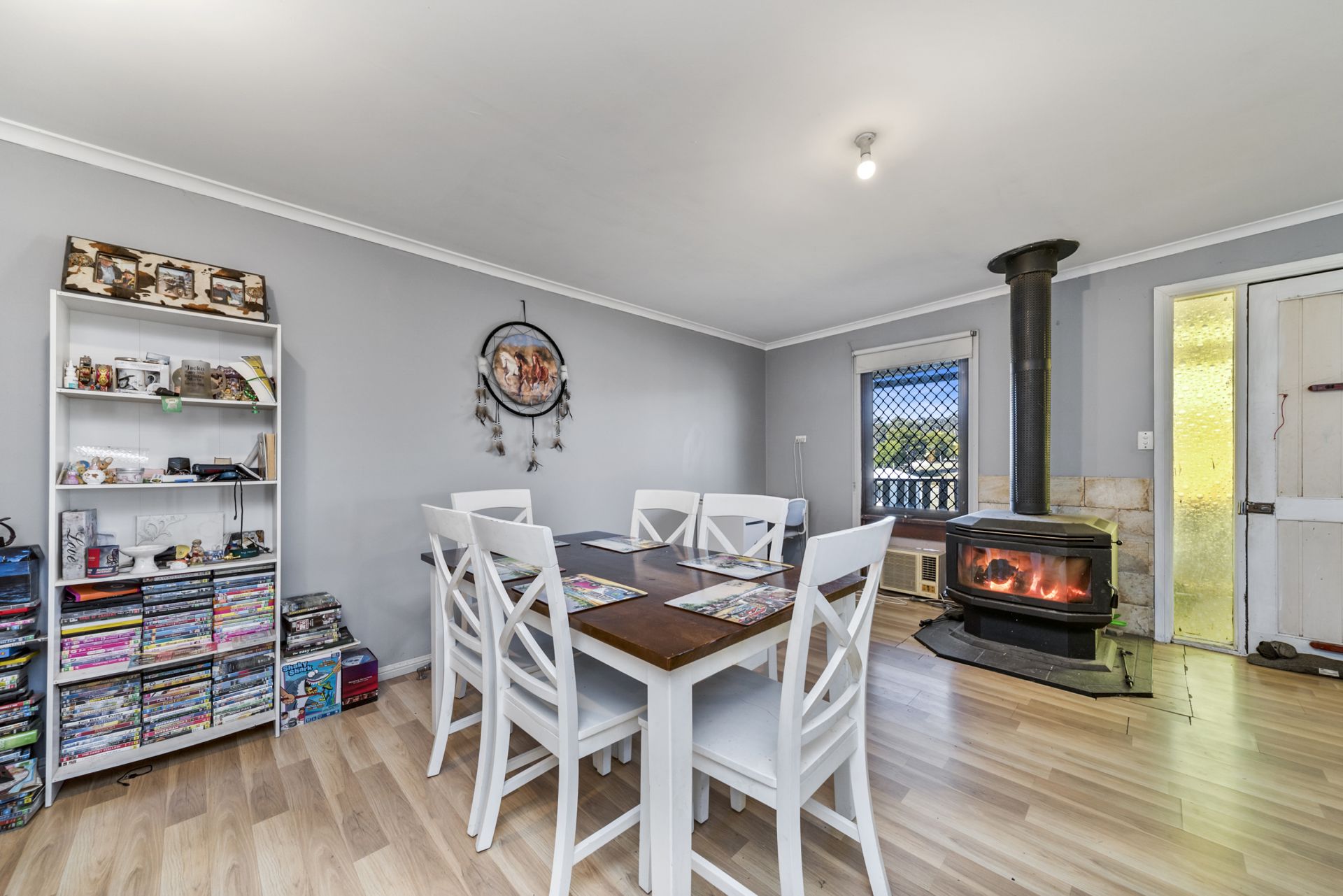 Woodfire combustion heating plus reverse cycle air conditioning.