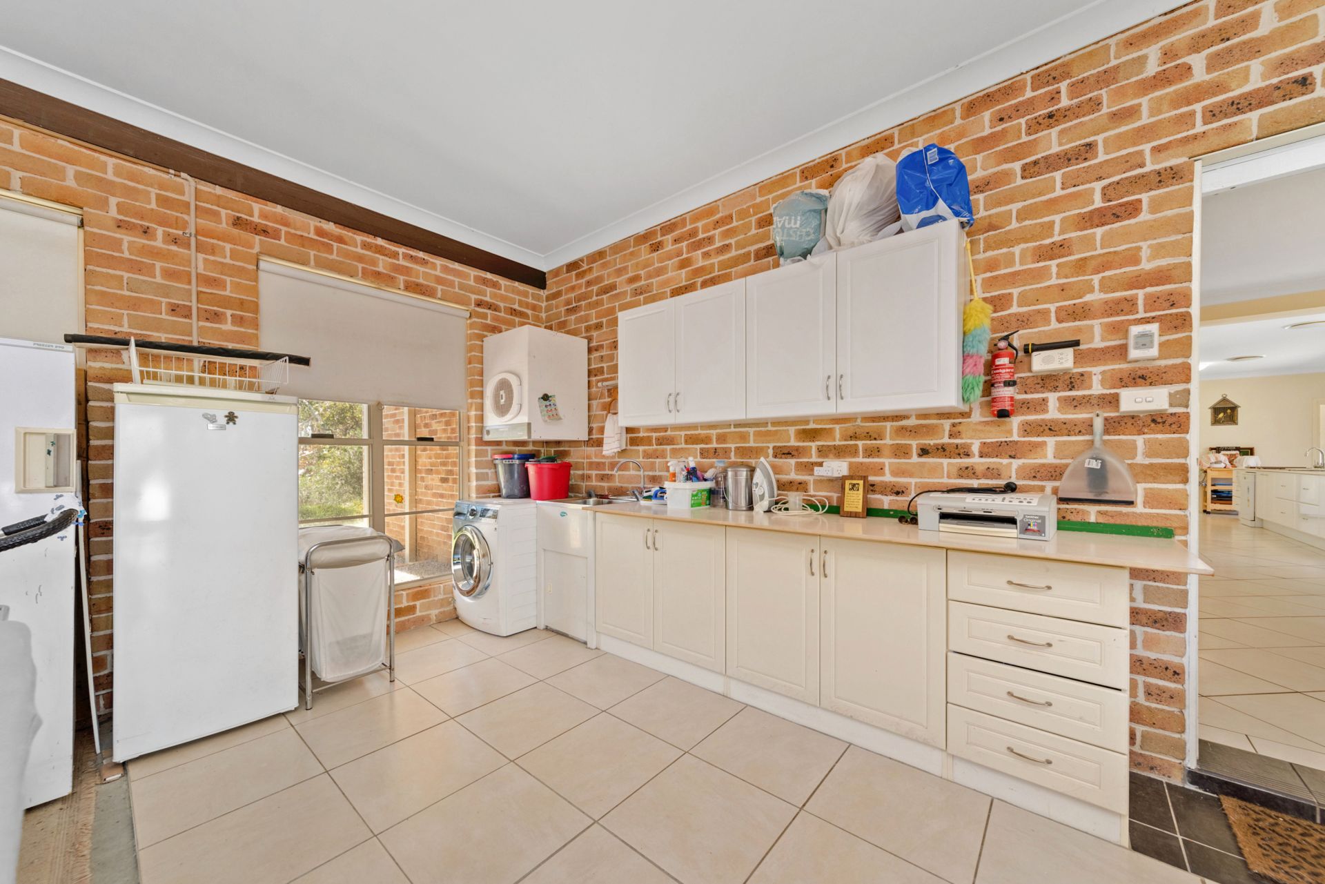 – Large stylish kitchen with stone bench-tops and walk-in pantry